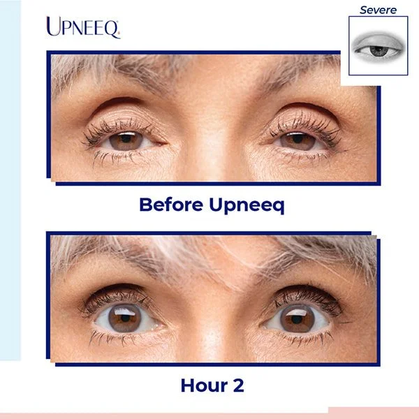 Upneeq® is the only FDA-approved prescription eyedrop proven to rapidly lift upper eyelids in adults with ptosis. Ptosis, or low-lying, drooping eyelids, can affect patients of any age. Ptosis can cause cosmetic concerns, such as an asymmetrical and/or tired appearance, making patients appear older than they are. Ptosis can also create vision difficulty, neck pain, brow ache, and headaches.